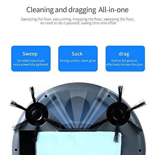 Roboter-Staubsauger ist ein vielseitiger und effizienter kleiner Reinigungshelfer, der Hund, Katzenhaar, Breadcrumb, Haferflocken und sogar Hundefutter mit minimalem Aufwand in Schach hält und auf harten Oberflächen und Teppichböden hervorragend funktioniert.Merkmal-Ein-Knopf-Start, fegen den Boden, wischen den Boden, Staubsauger Drei-in-1, 1800PA starke Saugreinigung ist sauberer, der Mopp hat eine gute Wasserabsorptionsleistung und der nasse Wischboden ist effizienter.-Das Produkt ist klein und kann flexibel auf tote Ecken wie die Unterseite des Sofas reagieren.-USB-Aufladung, universelles Fahren, automatische Vermeidung von Hindernissen, Anti-Drop.-40 Dezibel, geräuscharm, intim und nicht störend.-Auf den Boden applizierbar: flacher Boden wie Marmor, Fliesen, Holzfußboden usw.SpezifikationName: RoboterstaubsaugerFarbe: grauKörperlithiumbatterie: 3,7 V 1200 MAHArbeitszeit: ca. 100 MinutenLadezeit: ca. 150 MinutenReinigungsbereich: 150m2Arbeitsspannung: 3,7VNennleistung: 3WGröße: 26 * 26 * 6,5 cmStaubkasten: ungefähr 400MLPaket enthaltenKehrmaschine * 1USB-Ladekabel * 1Bedienungsanleitung * 1Schraubenstift * 1