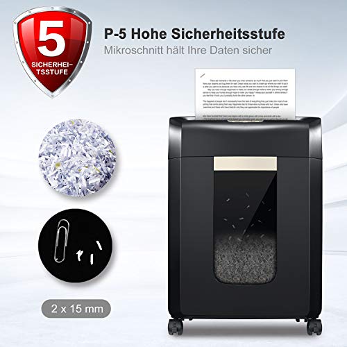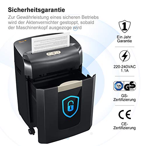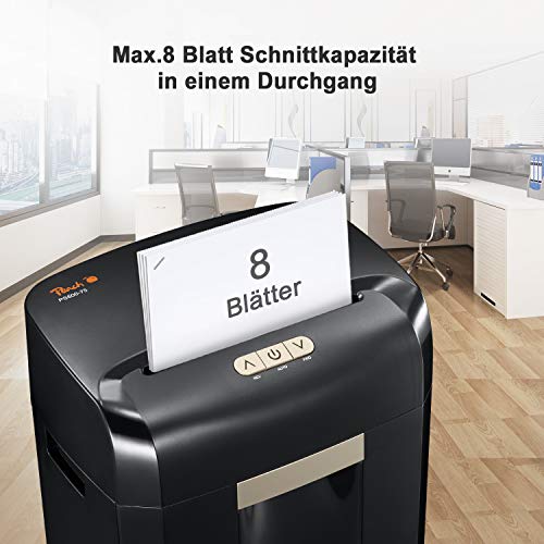 Gute Wahl für zu Hause und im kleinen Büro Der Pfirsich-Aktenvernichter PS 600-75 ist ein zuverlässiger persönlicher Aktenvernichter – ein kostengünstiges Produkt, bei dem bis zu 8 Blatt in 30 Minuten ununterbrochen verarbeitet werden, um Papier in 2 * 15 mm zu zerkleinern. Außerdem können Sie Kreditkarten mit demselben Schlitz zerstören. Benutzerfreundliches Design Unser 8-Blatt-Aktenvernichter bietet eine praktische LED-Anzeige, die den Arbeitsstatus des Aktenvernichters anzeigt, einschließlich Leistung, Überhitzung, Überlastung. Es gibt auch ein Korbfenster, das leicht zu finden ist, wenn der Behälter voll ist. Der Auszugsbehälter des Aktenvernichters bietet ein angemessenes Fassungsvermögen, was weniger Zeitaufwand und eine leichte Entleerung bedeutet. Funktionskontrollen für einfache Anwendung Dieser Aktenvernichter verfügt über einen Drei-Betriebsarten-Netzschalter mit den Funktionen Auto, Off und Reverse. Im Auto-Modus beginnt das Zerkleinern, sobald etwas erkannt wurde, und stoppt automatisch, wenn das Zerkleinern abgeschlossen ist. Mit der Umkehrfunktion können Sie den Papierstau beseitigen, wenn Sie mehr als 8 Blatt Papier zerkleinern. Vertrauenswürdige Qualität Als ausgereifte und zuverlässige Marke sind wir stets bemüht, unseren wertvollen Kunden leistungsstarke Produkte anzubieten. Es ist mit langlebigen Schneidklingen, einem leistungsstarken Motor und verschleißfesten Getrieben ausgestattet, um eine zuverlässige Qualität für Ihre zufriedene Benutzererfahrung zu gewährleisten. Garantieren Sie Ihren Nutzen Wir bieten 12 Monate Garantie ab dem Datum Ihres ersten Kaufs. Wenn Sie Fragen zur Verwendung unseres Produkts haben, wenden Sie sich bitte an unseren Kundendienst, um weitere Unterstützung zu erhalten.