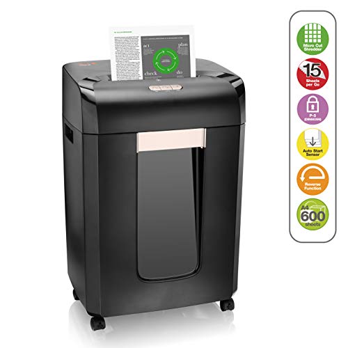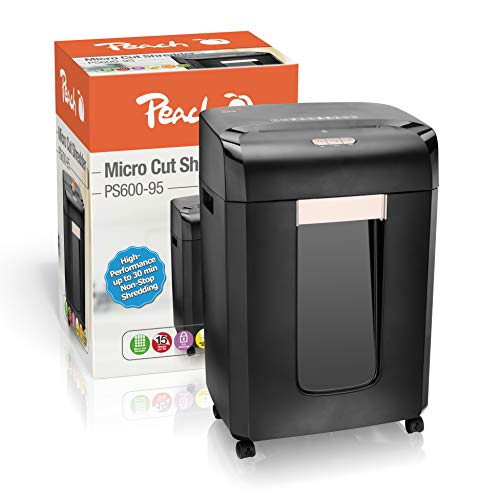 Der Peach Micro Cut Schredder PS600-95 vernichtet schnell und zuverlässig Papier mit bis zu 15 Blatt DIN A4 pro Durchgang. Er ist Heftklammerntolerant und der Auffangbehälter mit Sichtfenster hat ein Volumen von 30 Liter. Der Micro Cut Schredder PS600-95 eignet sich für Heimbüros und kleine bis mittlere Firmen.