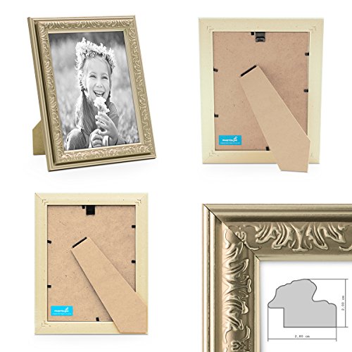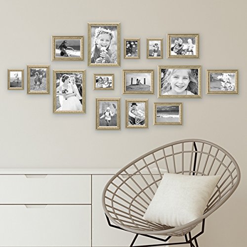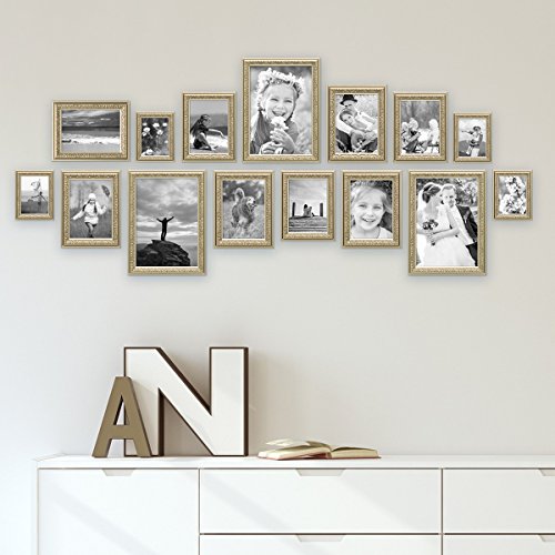 Dekoratives Bilderrahmen-Set im nostalgischen Ornament-Design zur einfachen Selbst-Gestaltung einer eigenen Bilderwand oder persönlichen Fotogalerie – stabile Wechselrahmen mit praktischem Zubehör. Bilderwände haben einen ganz besonderen Charme und verleihen dem eigenen Zuhause einen individuellen Charakter. Ob Foto Kunstdruck Zeichnung oder ein anderes Erinnerungsstück – Sie setzen jedes Bild in Szene und machen aus ihm einen echten Hingucker. Die Bilderrahmen lassen sich zu unterschiedlichen Anordnungen und Arrangements kombinieren – ganz symmetrisch in einer Reihe als Raster oder locker über die Wand verteilt. Die Bilderwand lässt sich jederzeit erweitern und mit anderen Bilderrahmen-Sets ergänzen. (Motive und Dekoration sind nicht im Lieferumfang enthalten.) LIEFERUMFANG:4x Bilderrahmen 10×15 cm / Außenmaß: 14 5×19 5 cm3x Bilderrahmen 13×18 cm / Außenmaß: 17 5×22 5 cm5x Bilderrahmen 15×20 cm / Außenmaß: 19 5×24 5 cm3x Bilderrahmen 21×30 cm / Außenmaß: 25 5×34 5 cm1x Mini-Wasserwaage1x Anleitung zur Gestaltung einer Bilderwand 1x Bildernägel zum schnellen Aufhängen Alle Bilderrahmen lassen sich im Hoch- oder Querformat an die Wand hängen.