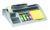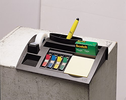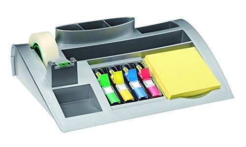 Hält die am häufigsten genutzten Büroutensilien ordentlich zusammen und jederzeit griffbereit. Modernes Design in Silber metallic. 7 Fächer für Stifte, Visitenkarten etc. Beschwerte rutschsichere Unterseite. Bestückt mit 1xBlock Postit Haftnotiz 654 (100Blatt), 4x Postit Index Mini (4×35 Streifen), 1xRlle Scotch Magic ape (19mmx33m). ArtNrHersteller: C50 Marke: PostIt [3M] Farbe: silberfarben