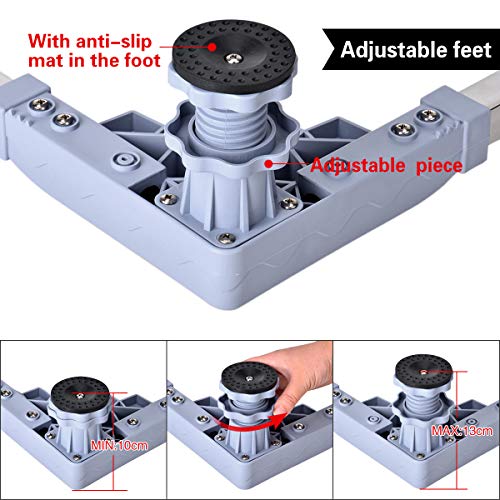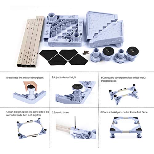 Merkmal: 1. Langlebige, stabile und einstellbare Größe. 2. Aus rostfreiem Stahl. 3. Verringern Sie effektiv die Erschütterung und die Geräusche der Waschmaschine. 4. Dieses verstellbare Regal hat 4 starke Füße, die Ihre Möbel in Position halten. 5. Es hat eine maximale Gewichtsgrenze von 300 kg und ist leicht zu montieren. Mit dem flexiblen Rahmen können Sie das Deck an Ihre Ladung anpassen. 6. Geeignet für die meisten Trockner, Klimaanlagen, Waschmaschinen und Kühlschränke. Das Paket beinhaltet: 4 panel. 4 Stahlrohr. 4 rutschfeste Matte. 8 Schrauben. Hinweis: Alle unsere Produkte wurden strengen Qualitätskontrollen unterzogen. Wenn Qualitätsprobleme auftreten oder Sie mit dem Produkt nicht zufrieden sind, kontaktieren Sie uns bitte. Wir bieten Ihnen die beste Lösung.