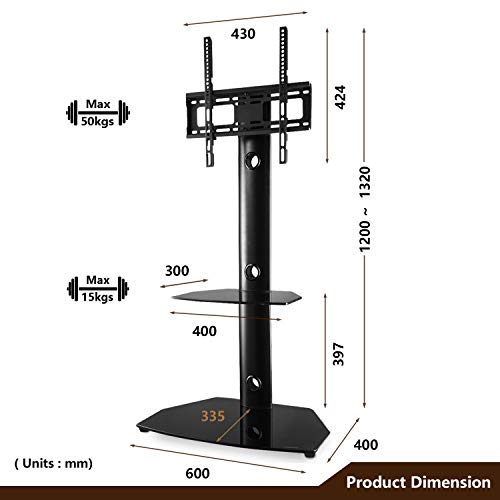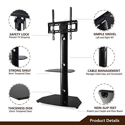 Marke: RFIVER Beschreibung: 3-in-1-TV-Ständer kann Ihre oringnal TV-Basis erhöhen, kann anstelle einer Wandhalterung TV-Halterung aber keine Notwendigkeit, Ihre schöne Wand zu bohren. Mehr für Sie, diese TV-Möbel verfügen über Kabel-Management, um Ihre Ausrüstung und Zubehör ordentlich und organisiert zu halten. Offenes schwarzes Hartglasregale sind perfekt für die meisten DVD-Player, HD-Recorder, DVRs, Kabel-TV-Boxen oder andere AV-Komponenten.Mount mit Wirbel und höhenverstellbare Funktionen, damit Sie besser sehen können. Der Ständer ist sehr stabil, um 27-55 „Fernsehen mit allen Komponenten zu unterstützen. Dies ist ein Muss, wenn Sie Platz in Ihrem Wohnzimmer sparen müssen Paket beinhaltet: – 1 x Dreh-TV-Ständer – 1 x Installationsanweisung Spezifikationen: – Produktabmessungen: 60 (L) x 40 (B) x 131,7 (H) cm – Karton: 68 (L) x 48 (B) x 11,5 (H) cm – Mount Gewicht Kapazität: 50kgs – Unterstützung VESA Größe: 100 (B) mm x 100 (H) mm bis 400 (B) mm x 400 (H) mm – Empfehlen Sie TV-Größe: 27-55 Zoll – Material: Glas, Metall – Farbe: Schwarz Sollten Sie irgendwelche Bedenken haben, hilft Ihnen unser freundliches Kundendienstteam gerne weiter und beantwortet Ihnen innerhalb von 24 Stunden.