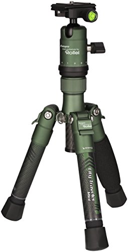 City Traveler Mini Tischstativ Grün – Kleines Stativ aus Carbon für Smartphones & DSLMsDas kleine Stativ / Kamera Tischstative der City Traveler Mini Serie in Grün aus Carbon ist ein hochwertiges und dreibeiniges Mini-Stativ für Kompaktkameras & Systemkameras (DSLM / spiegellose Kameras). Auch Smartphones, Action Cams & 360 Grad Kameras (für besonders beeindruckende vollsphärische 2 x 360 Grad Panoramas) können montiert werden. Das kleine und flexible, so wie dynamische Mini Reisestativ wurde im ultraleichten Carbon Design gefertigt. Diese Variante liefern wir in Grün, mit 613 g Eigengewicht inkl. Kugelkopf und einem kleinen Packmaß von 19 cm, bei einer maximalen Arbeitshöhe von 46 cm. So passt es bequem in jeden Rucksack und kann problemlos und ohne Kraftaufwand transportiert werden.Dank des Twist-Locks / Schnellentriegelung + Schnellwechselplatte ist das Tischstativ in ca. 8 Sekunden auf- und abgebaut. So können Sie auch Bilder und Videos von Motiven und Ereignissen wie schnell beweglichen Objekte oder Tieren machen, die eine schnelle Reaktionszeit erfordern. Dann bleiben auch diese Aufnahmen wackelfrei und scharf. Gleichzeitig wird die Fotografie mit Langzeitbelichtung vereinfacht, die mit einem unserer kleinen City Traveler Stative immer gelingt. Selbst bei sehr langer Belichtungszeit sind wackelfreie Aufnahmen ohne Verlust der Bildschärfe garantiert. Das kann z.B. bei der Städtefotografie, Reisefotografie und bei Architekturaufnahmen spannend sein, wenn Sie die Menschen und Autos nicht mit ablichten möchten. Per Hand wird es ab wenigen Sekunden Belichtungszeit zwangsweise wackelig. Das Bild wird unscharf. Hier steuert das Rollei Carbon Stativ der City Traveler Serie gegen.Deshalb eignet sich das kleine Citry Traveler Mini…