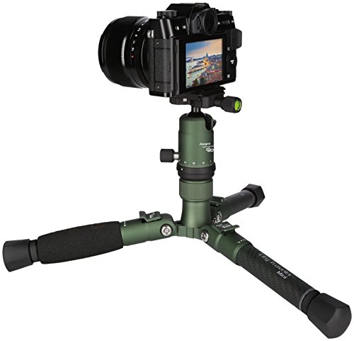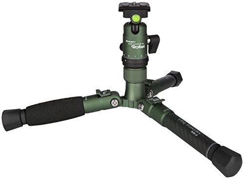 City Traveler Mini Tischstativ Grün – Kleines Stativ aus Carbon für Smartphones & DSLMsDas kleine Stativ / Kamera Tischstative der City Traveler Mini Serie in Grün aus Carbon ist ein hochwertiges und dreibeiniges Mini-Stativ für Kompaktkameras & Systemkameras (DSLM / spiegellose Kameras). Auch Smartphones, Action Cams & 360 Grad Kameras (für besonders beeindruckende vollsphärische 2 x 360 Grad Panoramas) können montiert werden. Das kleine und flexible, so wie dynamische Mini Reisestativ wurde im ultraleichten Carbon Design gefertigt. Diese Variante liefern wir in Grün, mit 613 g Eigengewicht inkl. Kugelkopf und einem kleinen Packmaß von 19 cm, bei einer maximalen Arbeitshöhe von 46 cm. So passt es bequem in jeden Rucksack und kann problemlos und ohne Kraftaufwand transportiert werden.Dank des Twist-Locks / Schnellentriegelung + Schnellwechselplatte ist das Tischstativ in ca. 8 Sekunden auf- und abgebaut. So können Sie auch Bilder und Videos von Motiven und Ereignissen wie schnell beweglichen Objekte oder Tieren machen, die eine schnelle Reaktionszeit erfordern. Dann bleiben auch diese Aufnahmen wackelfrei und scharf. Gleichzeitig wird die Fotografie mit Langzeitbelichtung vereinfacht, die mit einem unserer kleinen City Traveler Stative immer gelingt. Selbst bei sehr langer Belichtungszeit sind wackelfreie Aufnahmen ohne Verlust der Bildschärfe garantiert. Das kann z.B. bei der Städtefotografie, Reisefotografie und bei Architekturaufnahmen spannend sein, wenn Sie die Menschen und Autos nicht mit ablichten möchten. Per Hand wird es ab wenigen Sekunden Belichtungszeit zwangsweise wackelig. Das Bild wird unscharf. Hier steuert das Rollei Carbon Stativ der City Traveler Serie gegen.Deshalb eignet sich das kleine Citry Traveler Mini…