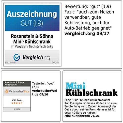 Genial zum Mitnehmen: Kühlschrank wärmt und kühlt ganz nach Ihren Wünschen!AUSZEICHNUNGEN / BEWERTUNGEN / PRESSESTIMMEN:Für diesen von den Medien stark beachteten Artikel liegen uns 4 Pressestimmen vor, die Sie in den Produktbildern finden. Immer die richtige Temperatur: Ihr neuer Mini-Kühlschrank ist ideal für Badesee, Hotelzimmer oder Zeltplatz. Erfrischung pur: Ihr Mini-Kühlschrank kühlt bis zu 20 °C unter Umgebungstemperatur herunter. Genießen Sie so auch unterwegs ein kühles Bier oder eine erfrischende Limo! Falls Sie es mal wärmer brauchen: Legen Sie einfach Schalter um und schon heizt der mobile Kühlschrank auf 50 °C. So halten Sie das Mittagessen oder Heißgetränke warm. Ideal für unterwegs: Zur Kühlung ist kein schweres Kühlaggregat nötig. So lässt sich Ihr neuer Reise-Kühlschrank prima transportieren. Zubehör- & Mitbestell-Empfehlungen:Kfz Verteiler: B000MVU0XODer Statt-Preis von EUR 69,90 entspricht dem ehem. empf. VK des Lieferanten.