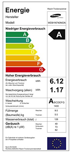 Der Waschtrockner Samsung WD91N740NOA/EG ist ein absoluter Allrounder. Das Gerät kann sowohl bis zu 9 kg an Schmutzwäsche zum Waschen aufnehmen, als auch bis zu 5 kg an Wäsche trocknen. Dank AddWash-Tür mit integrierter Klappe können vergessene Wäschestücke problemlos nachgelegt werden. Die QuickDrive-Technologie reduziert die Waschzeit um bis zu 50% und spart dabei bis zu 20% Energie. Dank des „Speed Wash & Dry“-Programms können bis zu 4 kg Wäsche in nur 3 Stunden gewaschen und getrocknet werden. Die Schaumaktiv-Technologie des WD91N740NOA/EG sorgt für eine gründliche und dabei schonende Reinigung auch bei niedriger Temperatur. AirWash mit erwärmter Luft ermöglicht das Auffrischen und reduziert unangenehme Gerüche, Flusen sowie Bakterien. Die FleckenIntensiv-Funktion ermöglicht eine gründliche Fleckenentfernung. Die App Q-Rator fungiert als persönlicher Wäsche-Experte und der WD91N740NOA/EG lässt sich dank Wi-Fi Smart Control 2.0 per Smartphone oder Tab starten und steuern. Für Sicherheit steht bei dem WD91N740NOA/EG ein Vollwasserschutz sowie eine Kindersicherung zur Verfügung.