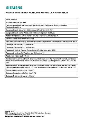 Fassungsvermögen (Waschen/Trocknen in kg): 7/4 Schleuderdrehzahl (U/min): 1500 Outdoor: Wäscht und trocknet Spezialfasern besonders schonend Hemden/Business: Hemden werden angetrocknet, aufgelockert und geglättet