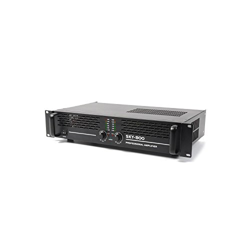 Schwerstarbeitender PA-Verstärker mit flexiblen Anschlussmöglichkeiten, 800W max.Leistungsspitze und ergiebigem technischen Hintergrund.Brückbar – Möglichkeit zum 2- und 1-Kanal-Betrieb.Geeignet zum 48cm-Rackeinbau.Der Skytec Sky800MKII ein führungsbewusster PA-Verstärker miterstklassigen technischen Referenzen und praxisnahen, flexiblenAnschlusshaushalt.Auf der Eingangsseite ist die PA-Endstufe mit Klinken- undCinch-Anschlüssen auf wechselnde Technik-Umgebungen eingestellt. Klinke-Ausgänge,Schraubklemmen und PA-Stecker verbinden den Skytec Sky800MKII mit allem marktüblichen Lautsprecher-Setups. Die Ground-/Liftschaltung unterstützt bei der erfolgreichen Entmündigung vonBrummschleifen.In der Leistungsspitze erklimmt das Gerät einen Gipfel von 800W, die auch in dieHöhenlagen gleichberechtigt und schlierenfrei zur weiteren Verwertung an dieTechnikumgebung übergeben werden.Das Gerät eignet sich zum 48cm (19″)-Rackeinbau.Bitte beachten Sie, dass die Bilder das optisch und grundfunktional identischeModell Sky-1500MKII abbilden.Eigenschaften• Eingänge: Stereo-Cinch-Line-Eingang, 2 x 6,3mm-Klinke-Eingang, PA-Au sgang (stereo), Klinke-Ausgang (stereo), Satz Schraubklemmen (stereo) • Stereo-/Mono-Umschaltung• Ground- / Lift-Umschaltung• belastbares Metallgehäuse• LED-Indikation für Clipping, Signal, Brücke, Sicherung• Front mit beleuchtetem LED-Logo• Ausgangsimpedanz: 4 bis 8 Ohm• Signal-Rausch-Abstand: >90 dB• Frequenzgang: 10Hz bis 20kHz• Dämpfungsfaktor: > 250Lieferumfang• Gerät• Netzkabel • deutsche Anleitung (+ Eng, Spa) Abmessungen• 48,2×8,8×31,4cm• Gewicht: ca. 9kg • geeignet zum 48cm (19″)-Rackeinbau – 2 HE