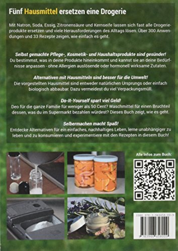 Zweite aktualisierte, erweiterte Ausgabe!Mit Natron, Soda, Essig, Zitronensäure und Kernseife lassen sich fast alle Drogerieprodukte ersetzen und viele Herausforderungen des Alltags lösen. Über 300 Anwendungen und 33 Rezepte zeigen, wie einfach es geht. Lass dich inspirieren von den Rezepten für nachhaltige, gesunde Alternativen zu zahlreichen Drogerieprodukten und mach auch dein Leben ein bisschen grüner!Selbst gemachte Pflege-, Kosmetik- und Haushaltsprodukte sind gesünder!Du bestimmst, was in deine Produkte hineinkommt und kannst sie an deine Bedürfnisse anpassen – ohne Allergien auslösende oder hormonell wirksame Zutaten.Alternativen mit Hausmitteln sind besser für die Umwelt!Die vorgestellten Hausmittel sind entweder natürlichen Ursprungs oder einfach biologisch abbaubar. Dazu vermeidest du viel Verpackungsmüll.Do-It-Yourself spart viel Geld!Deo für die ganze Familie für weniger als 50 Cent? Waschmittel für einen Bruchteil dessen, was du im Supermarkt bezahlen würdest? Dieses Buch zeigt, wie es geht.Selbermachen macht Spaß!Entdecke Alternativen für ein einfaches, nachhaltiges Leben, lerne unabhängiger zu leben und zu konsumieren und experimentiere mit den Rezepten in diesem Buch.