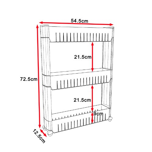 Mit dem Nischenwagen schaffen Sie in Lücken oder Nischen bis 13cm neue Platzreserven für Küche oder Bad. Die drei geräumigen Körbe lassen sich je nach Bedarf mit Vorräten, Putz- oder Spülmitteln bestücken. Bequem zu Verschieben durch vier stabile Kunststofflenkrollen. Einfache Montage, Aufbauanleitung innenliegend. Viel Platz auf engstem Raum