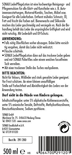 Preise incl. MwSt![list:bull]Entfernt mühelos Schmutz, Öl, Fett und frischt die Farben auf|Bienenwachs und Silikonöle machen das Leder geschmeidig und schützen es|Nach der Behandlung behält das Leder die ursprüngliche Griffigkeit und wird nicht rutschig[/list]