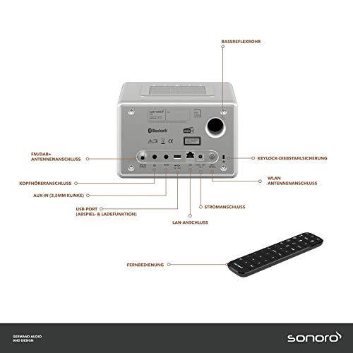 Perfekt für Schlafzimmer oder Arbeitszimmer: Das neueste Mitglied der Smart Line von sonoro bietet Ihnen eine Fülle an Möglichkeiten, um Ihre Lieblingsmusik zu genießen. Wählen Sie zwischen FM oder DAB+ Digitalradio, entdecken Sie in über 25.000 Internetradiosendern neue Favoriten, hören Sie CDs oder streamen Sie Ihren Sound über Dienste wie Spotify Connect, Deezer und AmazonMusic. Komplettiert wird die Ausstattung durch eine duale Weckfunktion, ein automatisch dimmbares Display und einen USB-Ladeport. Das Musiksystem verteilt den Klang über die 360° Lautsprechertechnologie gleichmäßig im Raum. Dank der kompakten Maße und des reduzierten Designs des klavierlackveredelten Holzgehäuses fügt sich das ELITE in jeden Raum harmonisch ein. Die Bedienung erfolgt ganz einfach am Gerät selbst oder über die mitgelieferte Fernbedienung.