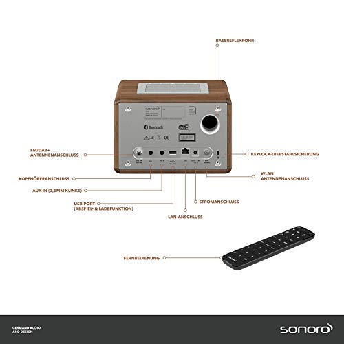 Perfekt für Schlafzimmer oder Arbeitszimmer: Das neueste Mitglied der Smart Line von sonoro bietet Ihnen eine Fülle an Möglichkeiten, um Ihre Lieblingsmusik zu genießen. Wählen Sie zwischen FM oder DAB+ Digitalradio, entdecken Sie in über 25.000 Internetradiosendern neue Favoriten, hören Sie CDs oder streamen Sie Ihren Sound über Dienste wie Spotify Connect, Deezer und AmazonMusic. Komplettiert wird die Ausstattung durch eine duale Weckfunktion, ein automatisch dimmbares Display und einen USB-Ladeport. Das Musiksystem verteilt den Klang über die 360° Lautsprechertechnologie gleichmäßig im Raum. Dank der kompakten Maße und des reduzierten Designs des klavierlackveredelten Holzgehäuses fügt sich das ELITE in jeden Raum harmonisch ein. Die Bedienung erfolgt ganz einfach am Gerät selbst oder über die mitgelieferte Fernbedienung.