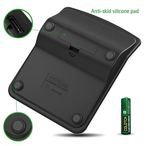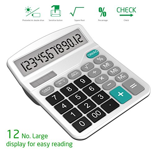 Der Rechner steht sicher auf vier Gummifüßen und Die Tasten und Beschriftungen sind groß. Display angewinkelt aber fest, Der Winkel lässt sich nicht verstellen oder gar absenken, damit er z. B. flach verstaut werden könnte. Der Rechner ist sowohl solar- als auch batteriebetrieben. Super, fehlt mal längere Zeit die Sonne springt die Batterie ein. Die doppelte Energieversorgung ist sehr nützlich, Auf der Rückseite des Taschenrechners befindet sich das Batteriefach für die benötigte AA Batterie (nicht mit im Lieferumfang). Steuer- und Währungsumrechnung Funktion und ideal fürs Büro bzw. den Schreibtisch. Der Rechner verfügt über 12 Anzeigefelder. Er ist mit den Grundfunktionen ausgestattet (+, -, %, Memory, Doppelnull, Rückschritttaste.