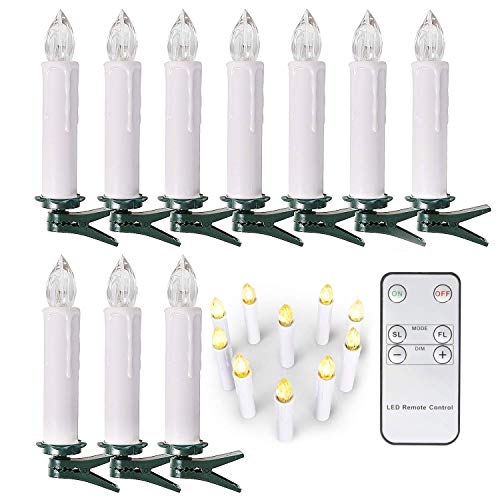 ★★ Frohe Weihnachten ★★ SunJas 10/20/30/40 kabellose, batteriebetriebene Kerzen mit infrarote Fernbedienung ( einzeln ansteuerbar ) Wahlprogrammen in drei verschiedenen Farben für eine angenehme Atmosphäre. Universell als Dekorationselemente einsetzbar. Beschreibung: • sehr einfache Handhabung • 3 verschiedene Lichtmodifikationen ( schnell flimmerndes, langsam flimmerndes sowie konstantes Licht ) • Inkl. Infrarote Fernbedienung • Die Kerzen werden einzeln mit der Fernbedienung ein- und ausgeschaltet, damit haben Sie nahezu unbegrenzte Möglichkeiten. • Die Lichtstimmung direkt vom Sofa aus nach Belieben zu variieren. • Sowohl Batterien als auch aufladbare Akkus können verwendet werden. Benötigt werden Batterien des Typs AA für die Kerzen und eine Knopfzelle für die Fernbedienung. ♠ ( nicht inkl. AA-Batterie dabei, aber die Fernbedienung mit Knopfzelle!!!) ♠ Technische Daten: • Maße:D 1,6 x H 11 cm • Kerze: ca. 10 cm x 1,8 cm • Fernbedienung: ca. 9 cm x 3,5 cm x 2,5 cm Lieferumfang: • 10/20/30/40 x kabellose LED-Kerze • 10/20/30/40 x Clips mit Kerzenhalterung • 1 x Fernbedienung • 1 x die Anleitung ACHTUNG: ♠ Wie kann man es vermeiden, dass die Fernbedienung der Lichtkette Ihren Fernseher stören: ♠ Man muss den Abstand zwischen Kerzen und Fernseher mindesten 5 Meter, und den Fernshen außerhalb des 60° Kontrollbereiches der Fernbedienung behalten. SunJas Service ✿ 100% Zufriedenheitsgarantie Jede Frage, zögern Sie nicht uns zu kontaktieren.