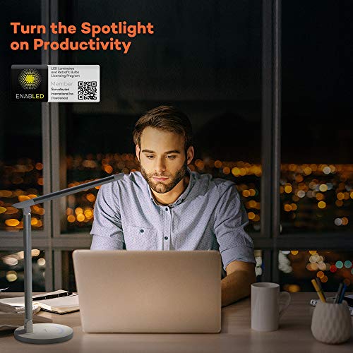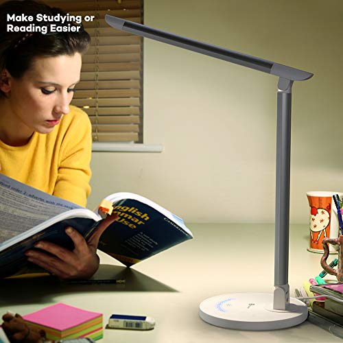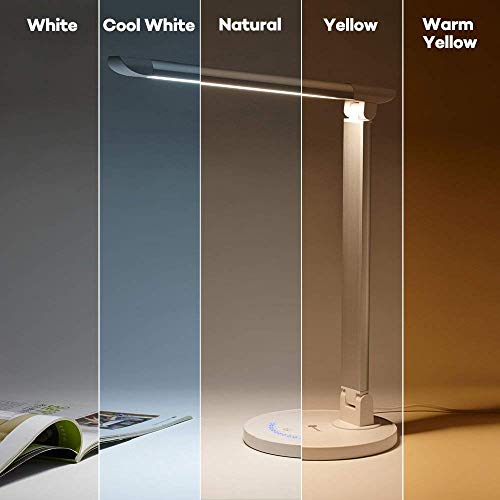 Die neuste Generation energiesparender LED Schreibtischlampen von TaoTronics bietet augenfreundliches Licht, hat einen geringen Stromverbrauch, anpassbare Farbtemperaturen und dimmbare Helligkeitsstufen. Ideal für zuhause oder im Büro. Moderne Tischlampe Sagen Sie Ihrer alten Glühlampe und schwach ausgeleuchteten Arbeitsplätzen Lebewohl und erfahren Sie diese elegant gestaltete, modern aussehende und sehr energiesparende Lichtquelle beim lesen, studieren und arbeiten. Augenfreundliches Sehen Entworfen um jeden Platz natürlich, flimmerfrei und augenfreundlich auszuleuchten. Insbesondere bei mehrstündiger Benutzung geringere Ermüdung der Augen als bei herkömmlichen Glühlampen. Anpassbares Licht Wechseln Sie mit einer leichten Berührung Ihrer Fingerspitze zwichen starken weißen Licht und weichen gelben Licht. 5 verschiedene Farbtemperaturen und 7 verschiedene Hellígkeitsstufen stehen Ihnen für die Feineinstlleung Ihrer Beleuchtung zur Verfügung. Umweltfreundlich Die neueste Generation umweltfreundlicher LED Lampen verbraucht 75% weniger Energie als herkömmliche Glühlampen bei gleicher Lichtaus. Lieferumfang: 1 x LED Multifunktion-Lampe (Modell: TT-DL13 Schwarz) 1 x Lampensockel 1 x Netzkabel 1 x Bedienungsanleitung Achtung: Der USB-Anschluss ist nicht für Geräte mit einem Input über 1A geeignet. Dies kann ggf. Unterbrechungen des Ladevorgangs verursachen.