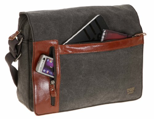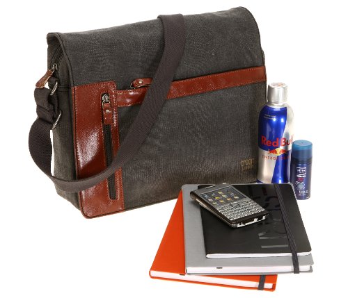 TROOP Messenger KALAHARI Canvas Schultertasche großes Hauptfach mit viel Stauraum, Reißverschluß Überwurf mit Klettfixierung (2fach), unter dem Überwurf: Zugriff auf die Fronttasche große Fronttasche, als Zubehörtasche: für Handy, MP3 Player, Terminplaner, etc. mit Organizer Fächer Frontfach mit Reißverschluß am Überwurf, zusätzl. kleine Einstecktasche mit RV geräumiges Rückenfach, mit Reißverschluss kleine Seiteneinstecktasche seitlich breiter Schulter-Tragegurt, verstellbar, max. Länge 135 cm stabile Verschlüsse und Ösen, nickelfrei Material Tasche: 80 % Baumwolle (Tasche: dickes Canvas), 5 % echtes Leder (Applikationen), 15 % Nylon (Innenfutter) Material Laptop Polster Tasche: 100 % Nylon, abwischbar Pflege: abwaschbar (30°C, Wasser & Seife / mit weicher Bürste und Schwamm) Technische Daten Außenmaße ca: Länge: 35,5 cm x Höhe: 28 cm x Tiefe: 10 cm Lieferung ohne Deko / Inhalt, auch ohne Laptop