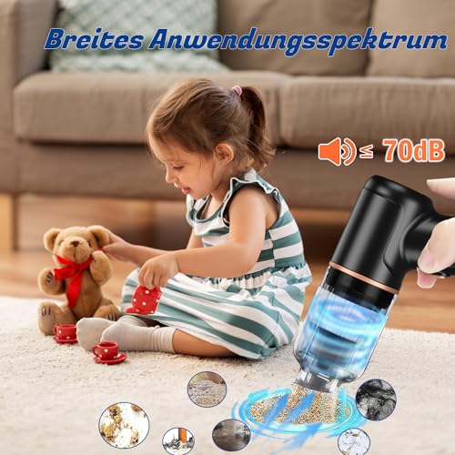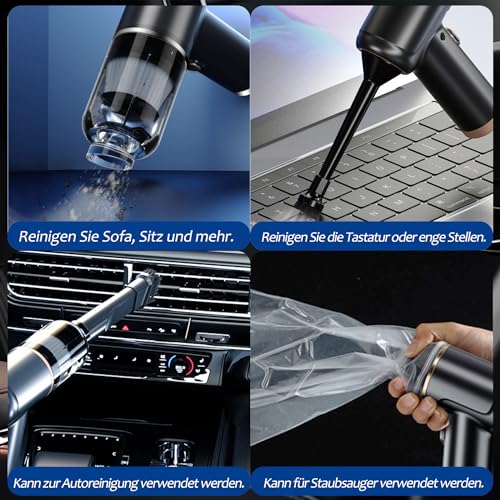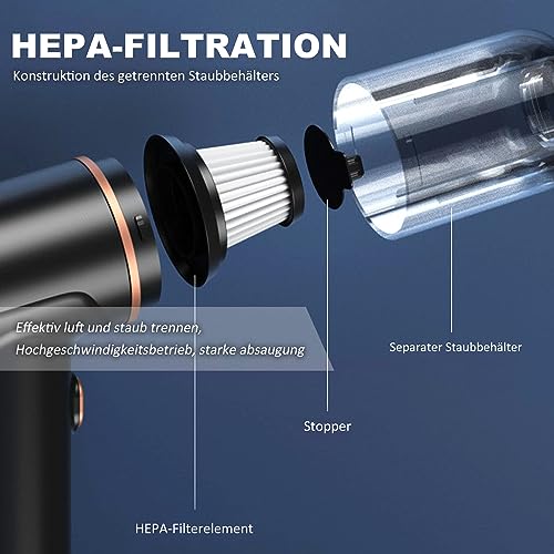 Mit seiner 12.000 Pa starken Saugleistung und dem langlebigen Akku meistert der WHJC Staubsauger mühelos alltäglichen Schmutz und hartnäckige Verunreinigungen. Das kabellose Design erlaubt es Ihnen, ihn überall zu verwenden – ob im Auto, in der Wohnung oder auf dem Balkon. Zudem überzeugt der Handstaubsauger mit einem geringen Gewicht und einer kompakten Bauweise, sodass er einfach zu verstauen ist.