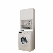 Waschmaschine. Der Schrank wird über der Waschmaschine genutzt und bietet somit eine Ergänzung zur Waschmaschine oder Trockner ohne zusätzlich eine Standfläche in Anspruch zu nehmen. Vor allem dort, wo wenig Stauraum vorhanden ist, ist ein Schrank für die Waschmaschine ideal.