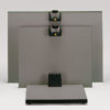 Mattgraues Grundbrett mit montiertem Sockel zur Befestigung der Führungssäule. Wasserwaage im Sockel. Einzeln höhenverstellbare Füße.