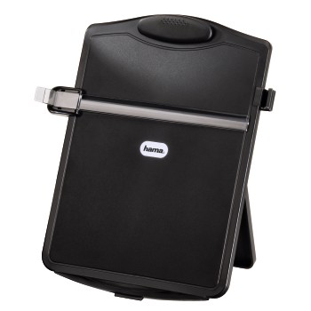 – universell einsetzbarer Konzepthalter ,- mit Vorlagenklemme, verstellbarem Zeilenlineal und Stiftehalter ,- durch beidseitige Nutzbarkeit des Zeilenlineals für Links- und Rechtshänder geeignet ,- für den Schreibtisch und unterwegs ,- dunkle Ausführung für verbesserte Kontrastwahrnehmung