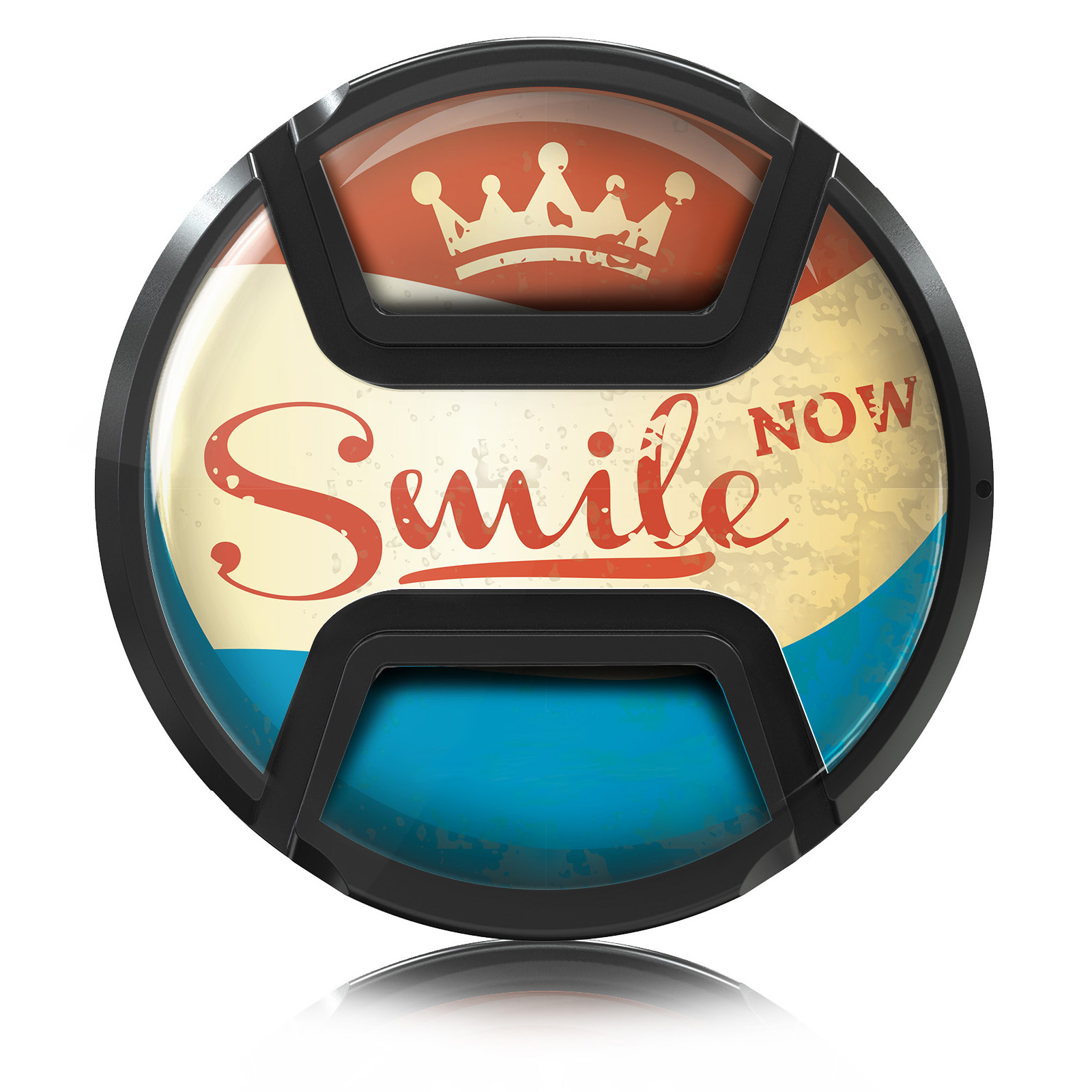 Objektivschutzdeckel „Snap-On“, mit Objektivdeckel-Sicherung, Motiv: Smile Now, ø 49 mm