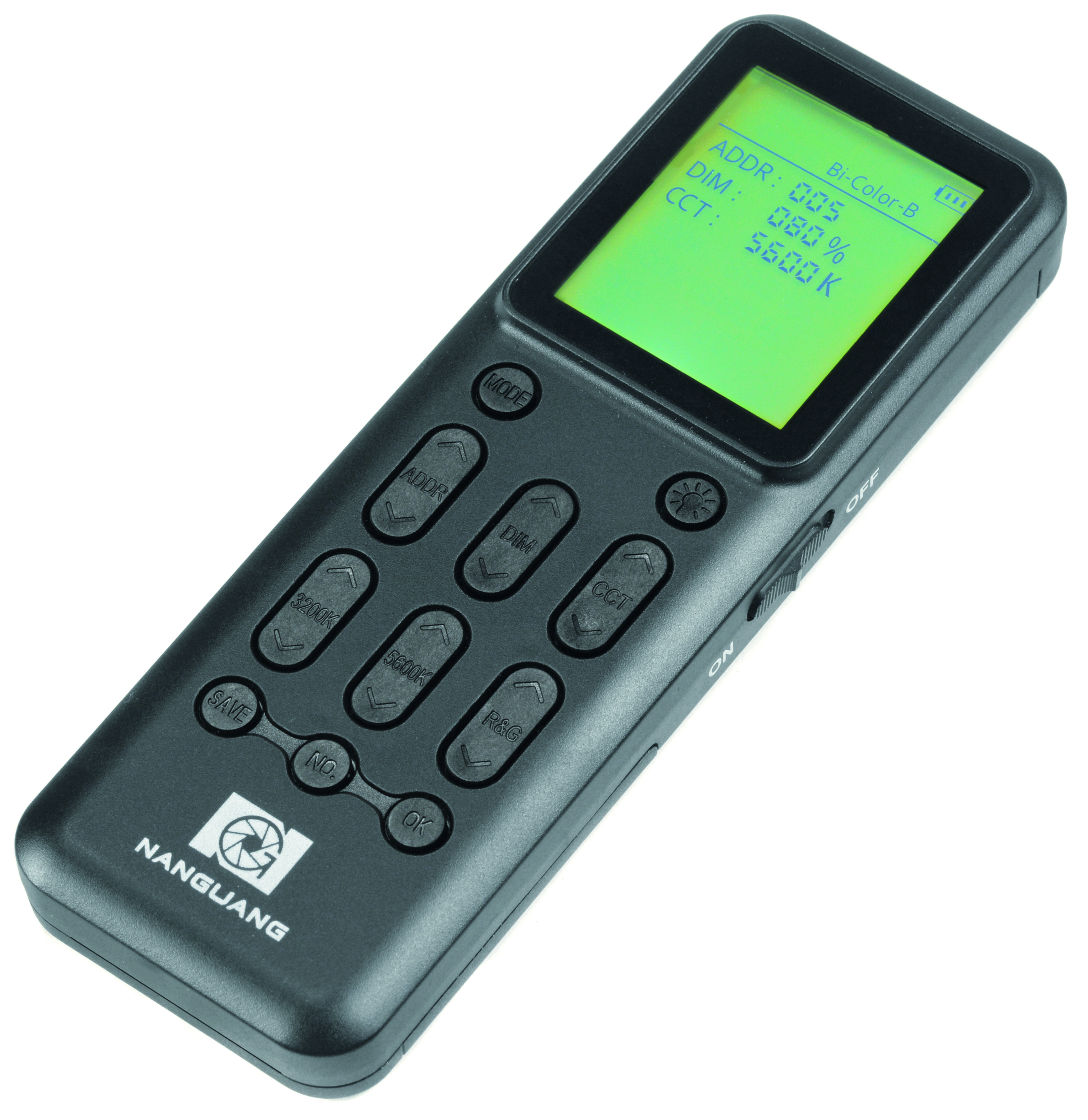 Zur komfortablen Steuerung einer oder mehrerer NanGuang LED-Leuchten mit eingebautem Funkempfänger. In den Betriebsarten Bi-Color-A und Bi-Color-B sind die Helligkeit und die Farbtemperatur kabellos regelbar, in der Betriebsart Single-Color nur die Helligkeit.