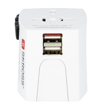– designed in Switzerland ,- geeignet für ungeerdete Geräte (2-Pol) ,- dualer USB-Port zum Laden von USB-Geräten ,- Steckdoseneingang für: Euro, Australien/China, UK (*UK nicht in der Schweiz-Version), USA/Japan ,- Ausgangsstecker: Euro, Australien/China, UK, USA/Japan ,- Eingangsspannung: 100 V – 250 V ,- max. Last: 2.5 A ,- Leistung: z.B. bei 100 V – 250 W / 250 V – 625 W ,- austauschbare Sicherung: T 2.5 A ,- USB Output: 5 V / 2.4 A shared ,- kein Spannungswandler
