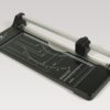 Automatische Anpressung des Schneidguts an der Schnittstelle mit transparentem Andrucklineal. Stabiler Schneidetisch aus Metall, mit aufgedruckten Skalen, Formatmarkierungen und Grad-Einteilung.