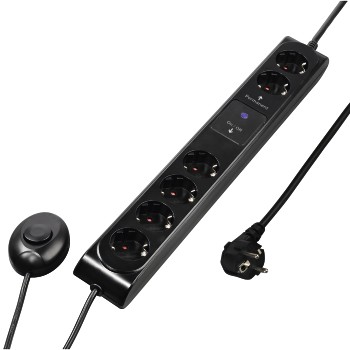 – hochwertige Steckdosenleiste ,- Fußschalter beleuchtet ,- 6-fach (4 schaltbar/2 permanent) ,- Steckdoseneinsätze um 45° gedreht ,- inkl. Kindersicherung ,- 1,5-m-Netzanschluss-Kabel und 1,5-m-Schalteranschluss-Kabel